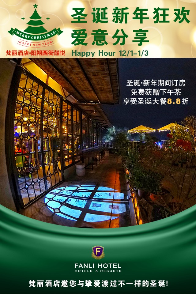 梵丽酒店·阳朔西街囍悦,圣诞·新年期间订房,免费获赠下午茶套餐,享受圣诞大餐可获8.8折!